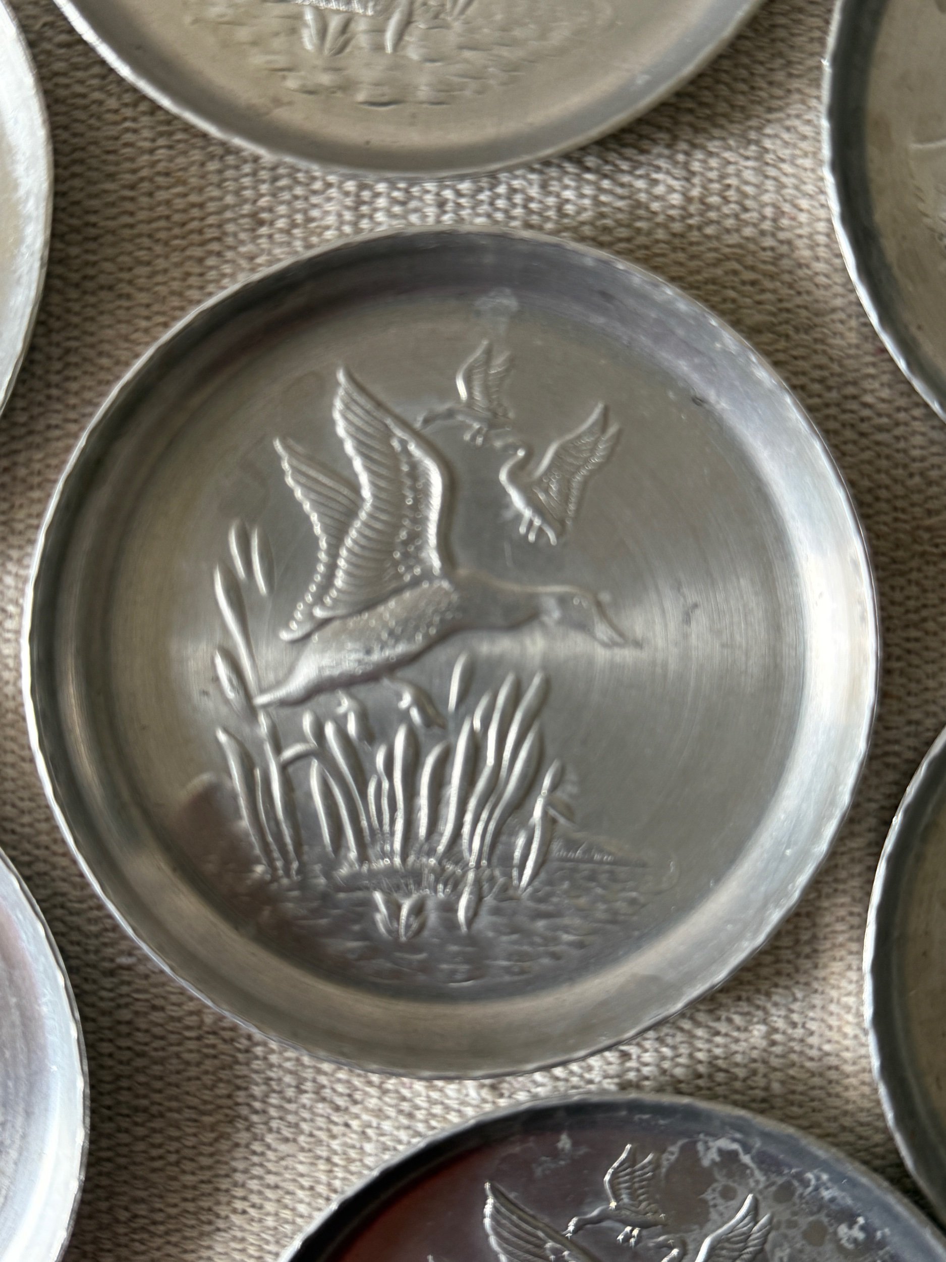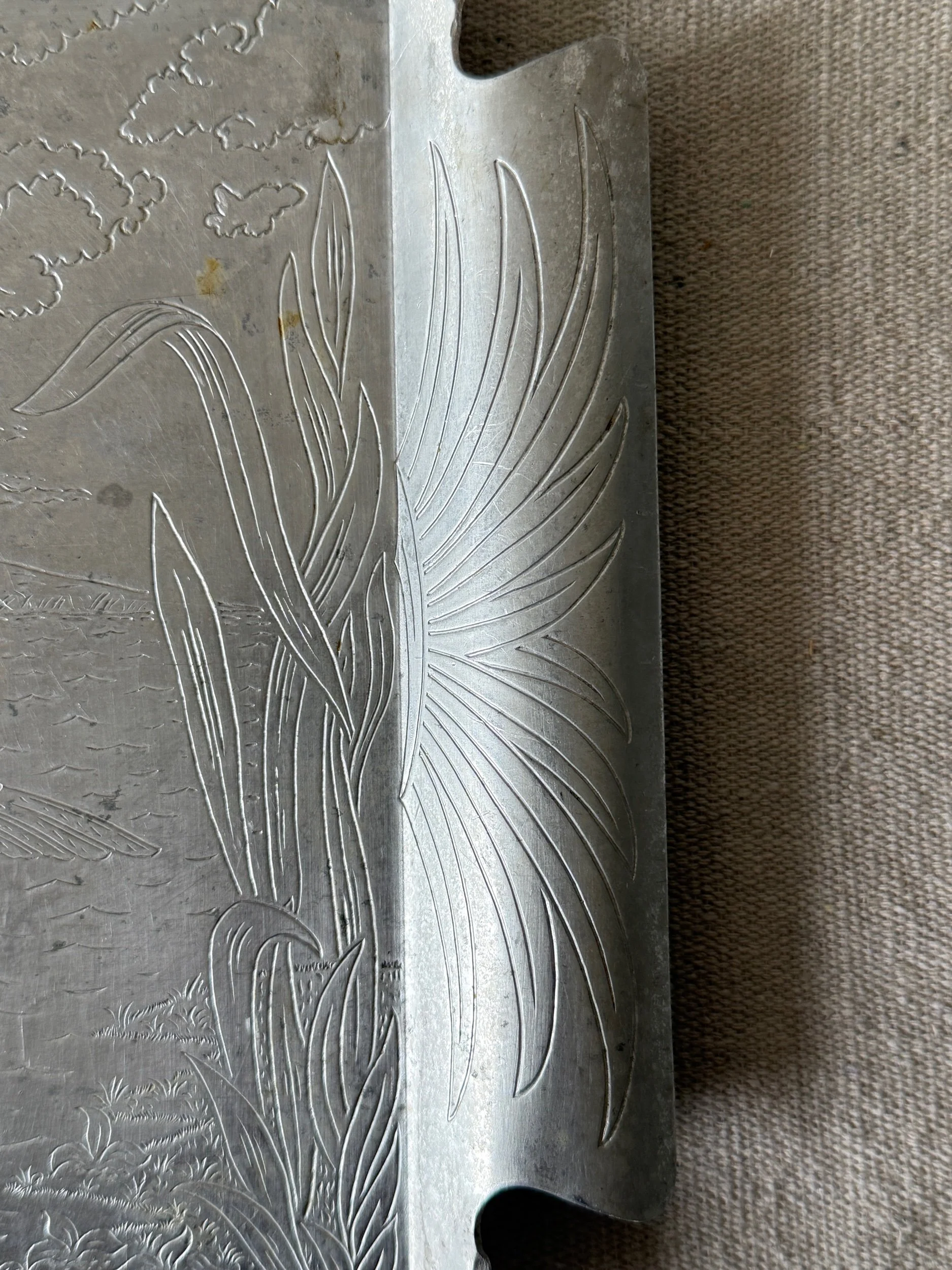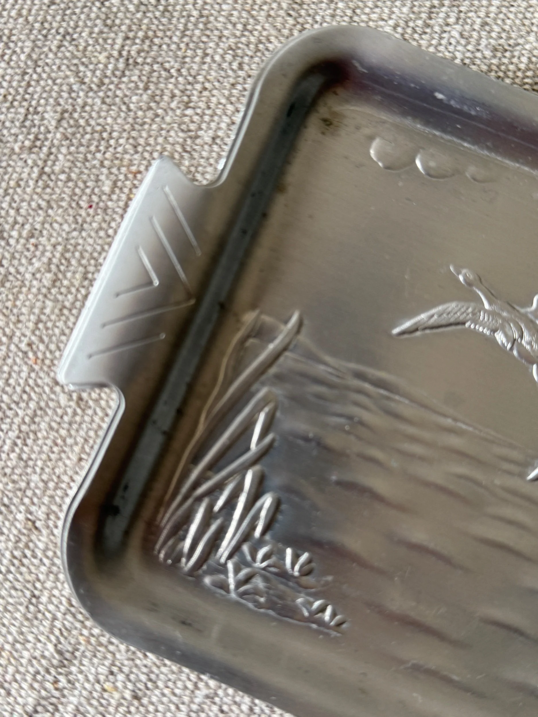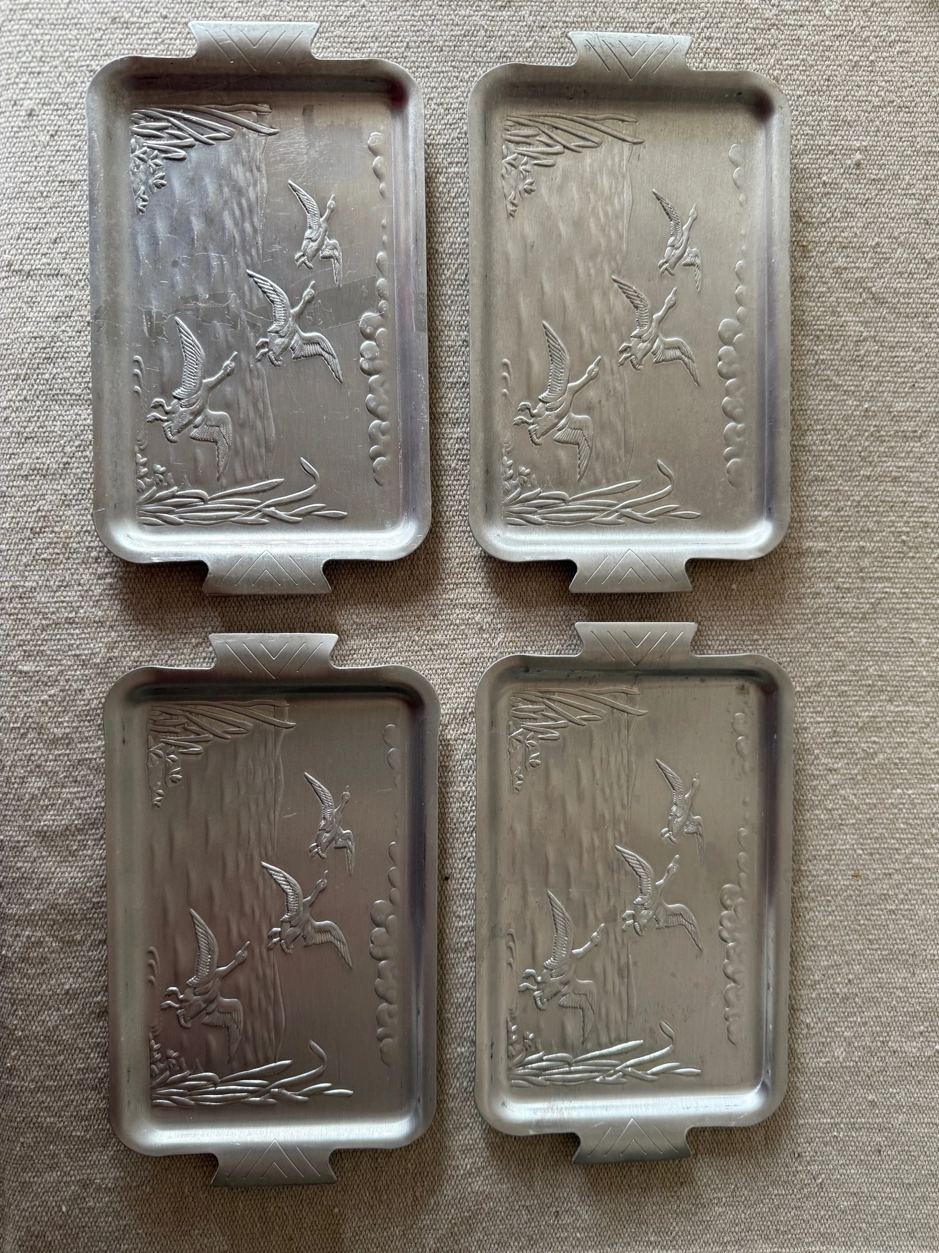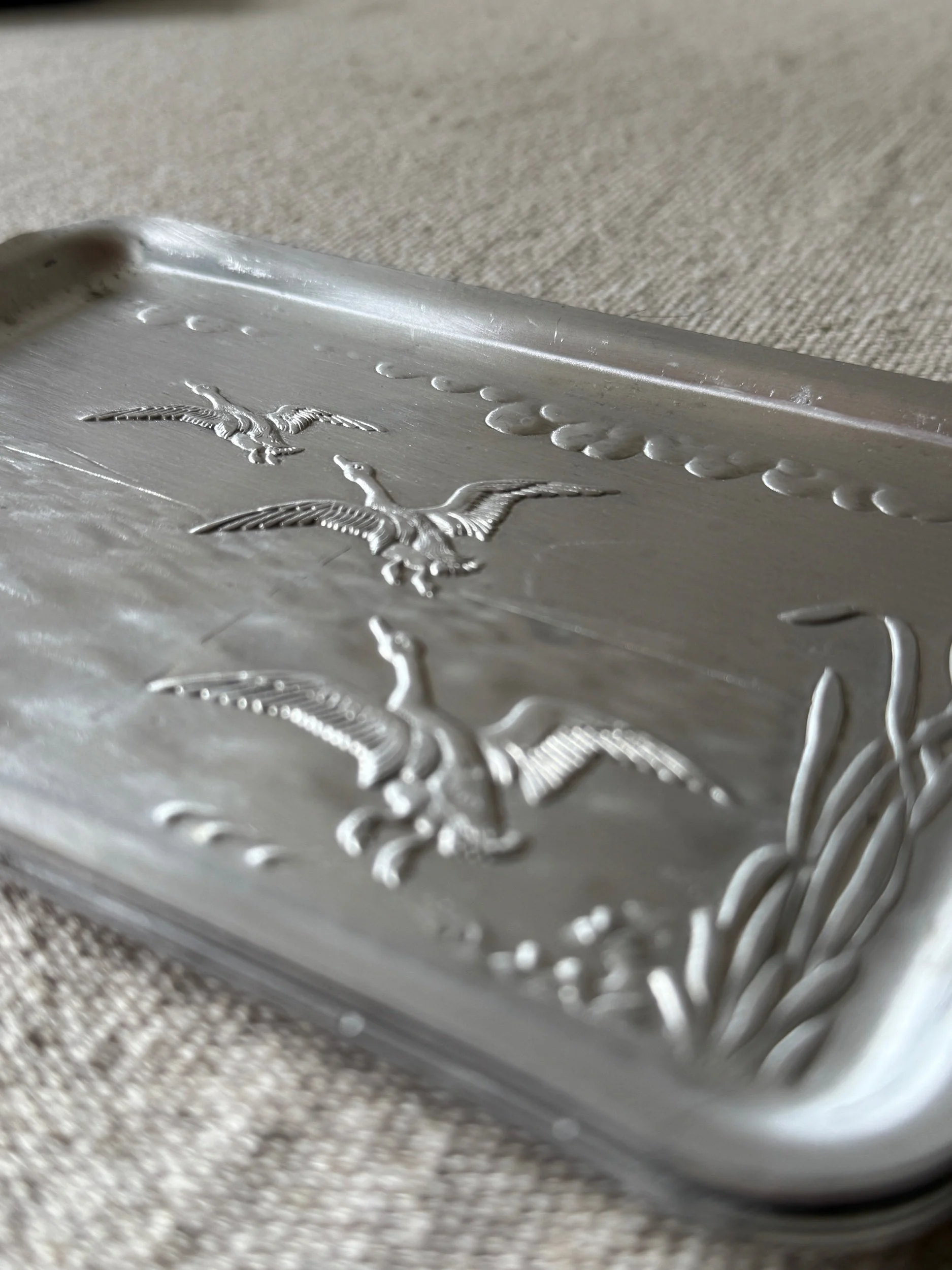 Vintage Etched Aluminum Serving Set with Flying Bird Motif
