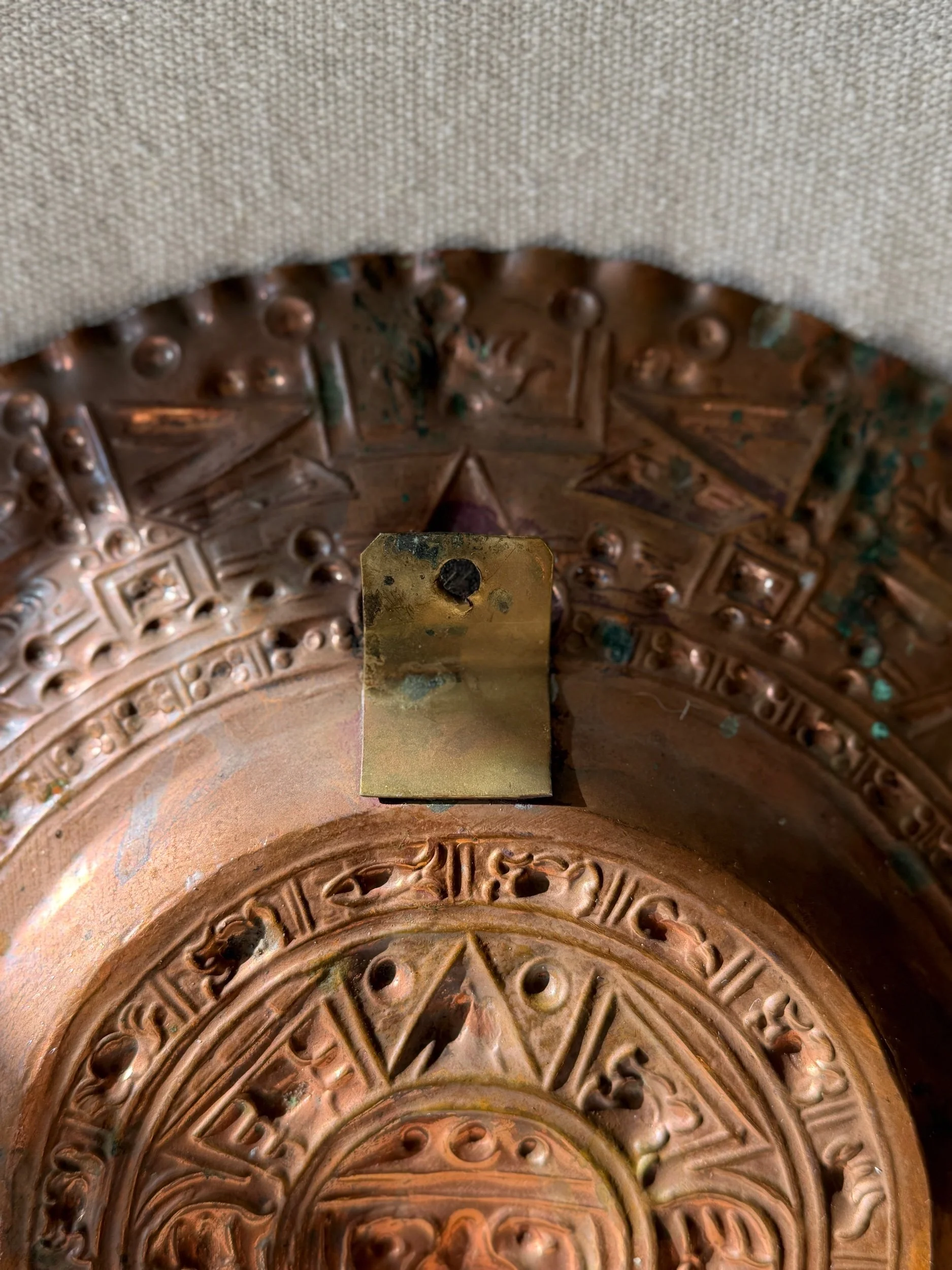 The warm, burnished copper tones evoke a sense of worldliness, while the hand-hammered details speak to the artisan’s hand. Whether displayed above a mantel in a rustic cabin, layered into an eclectic gallery wall, or placed as a focal point in a study of leather and books, this piece channels a global sophistication. It’s an object of character—one that suggests journeys taken and stories told.