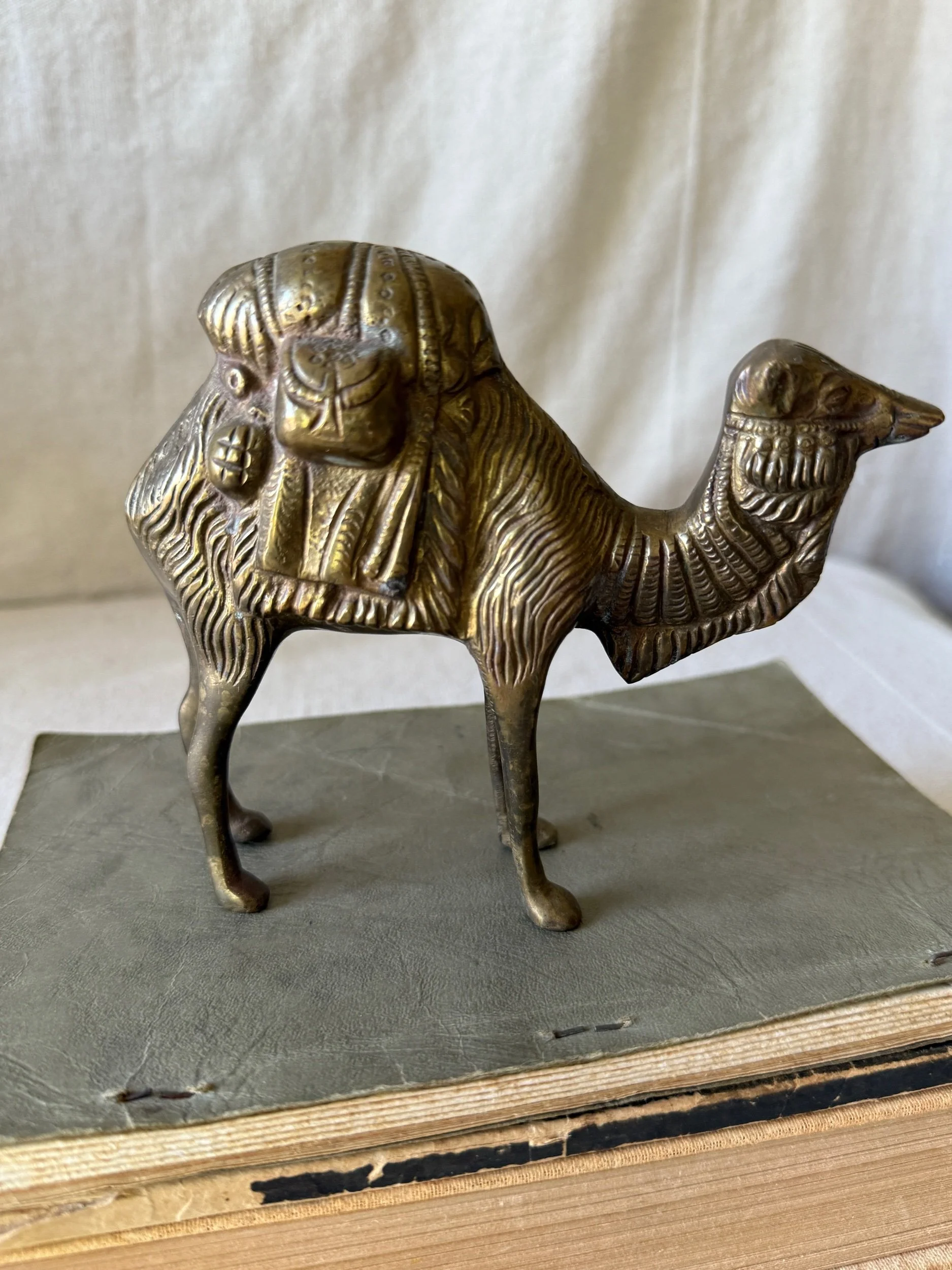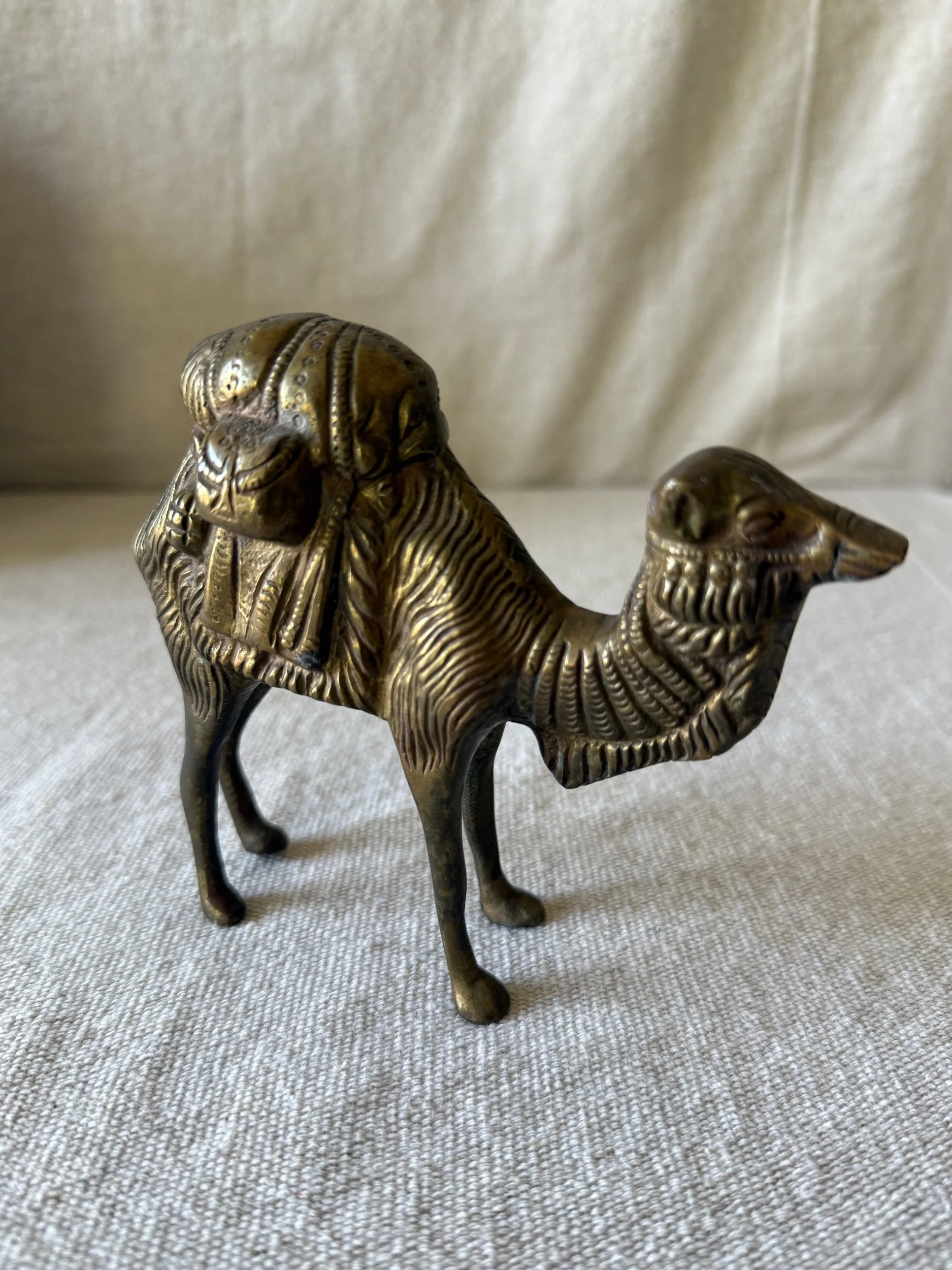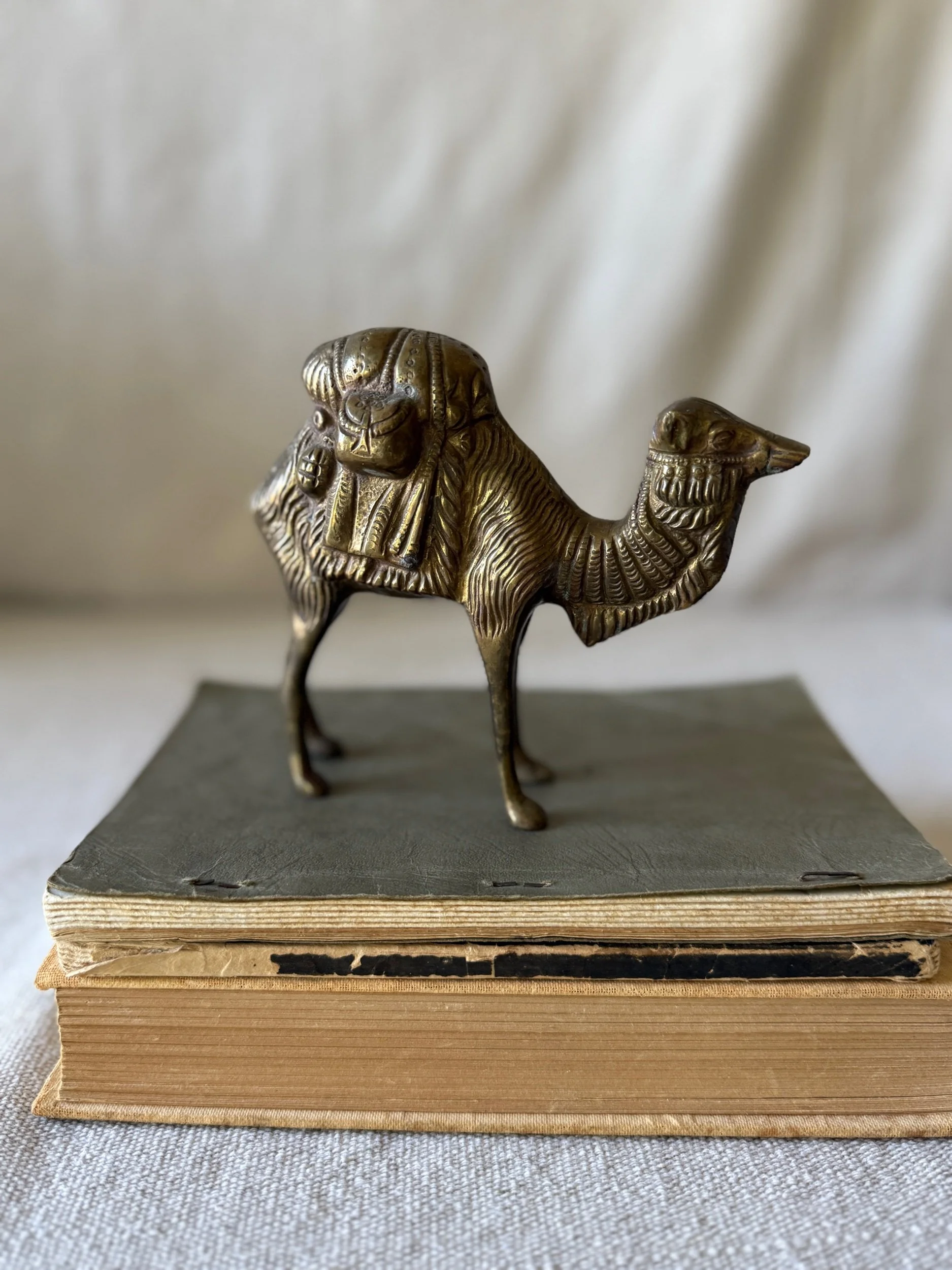 Bring a touch of global charm and timeless craftsmanship into your home with this vintage solid brass camel figurine, measuring 5.5” wide by 5” high. This finely detailed piece captures the spirit of travel and adventure, with beautifully textured features and a warm golden patina that speaks to its age and artistry.
