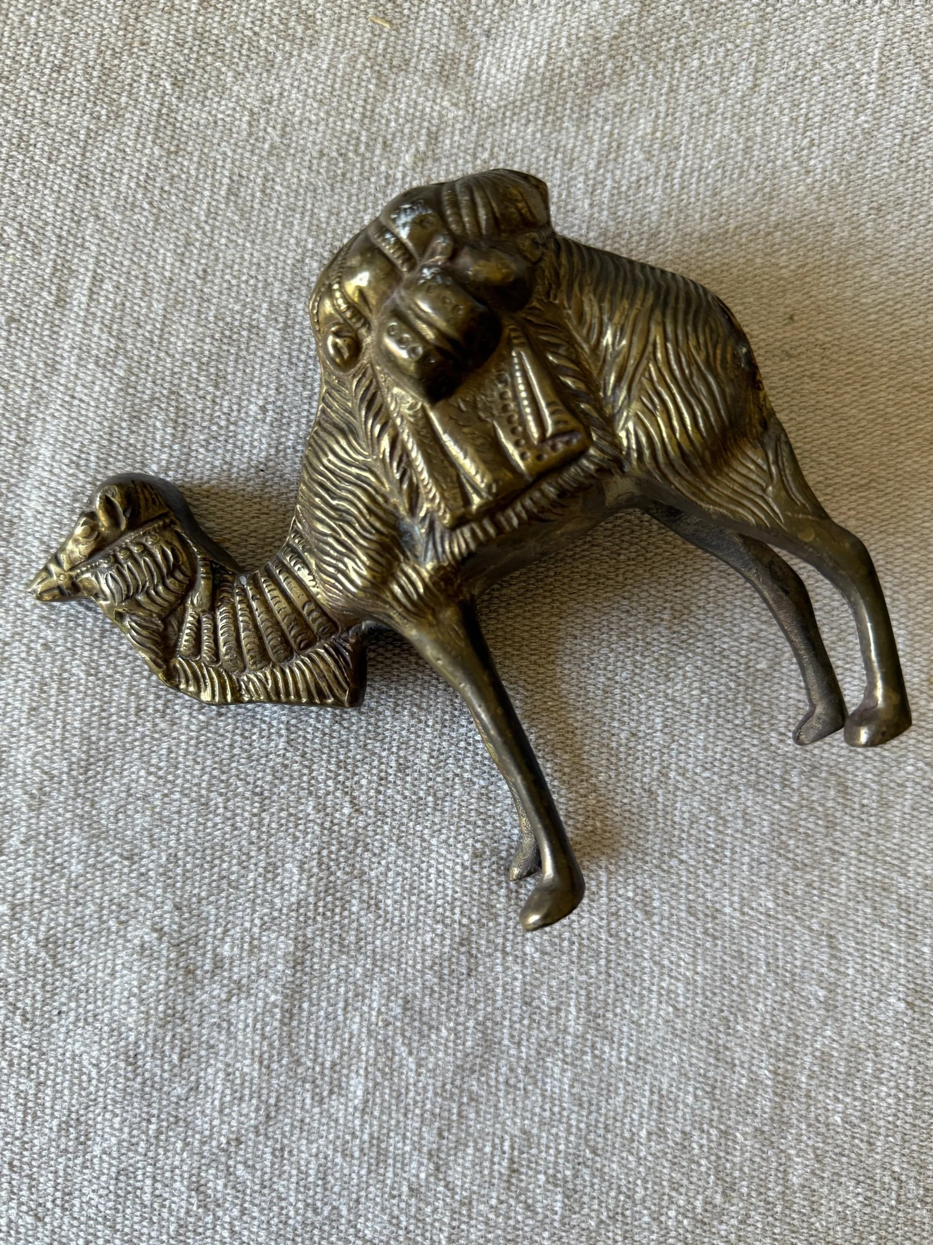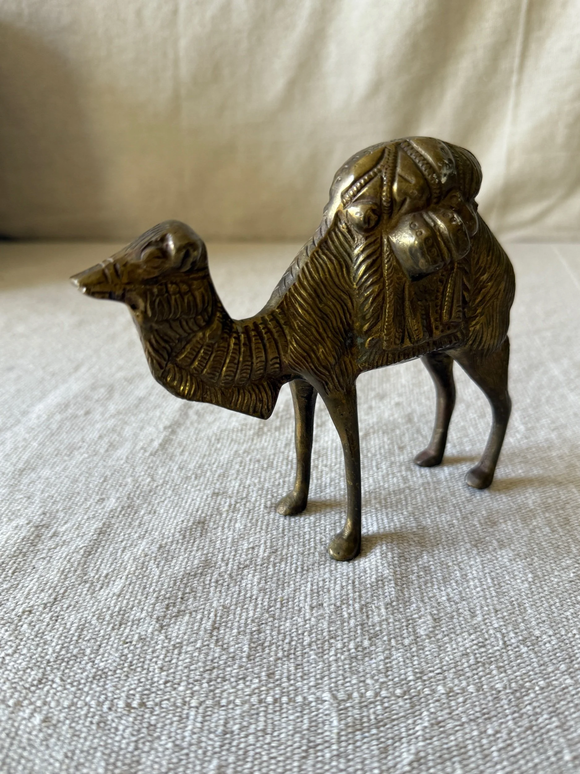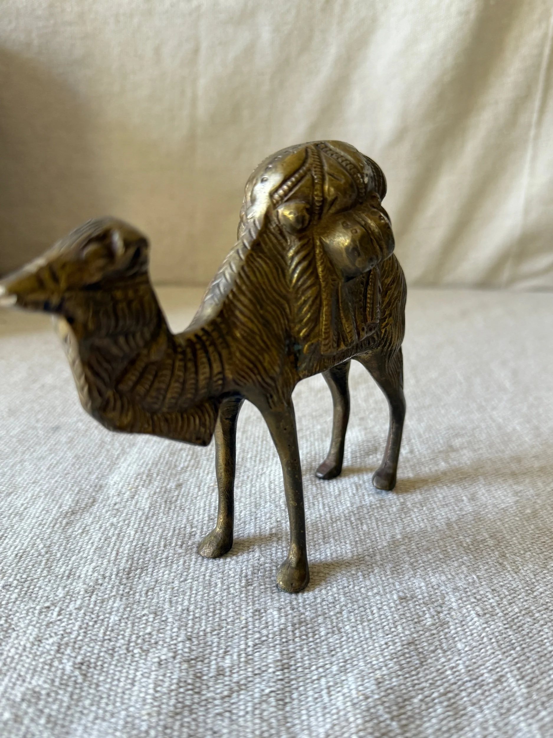 Bring a touch of global charm and timeless craftsmanship into your home with this vintage solid brass camel figurine, measuring 5.5” wide by 5” high. This finely detailed piece captures the spirit of travel and adventure, with beautifully textured features and a warm golden patina that speaks to its age and artistry.